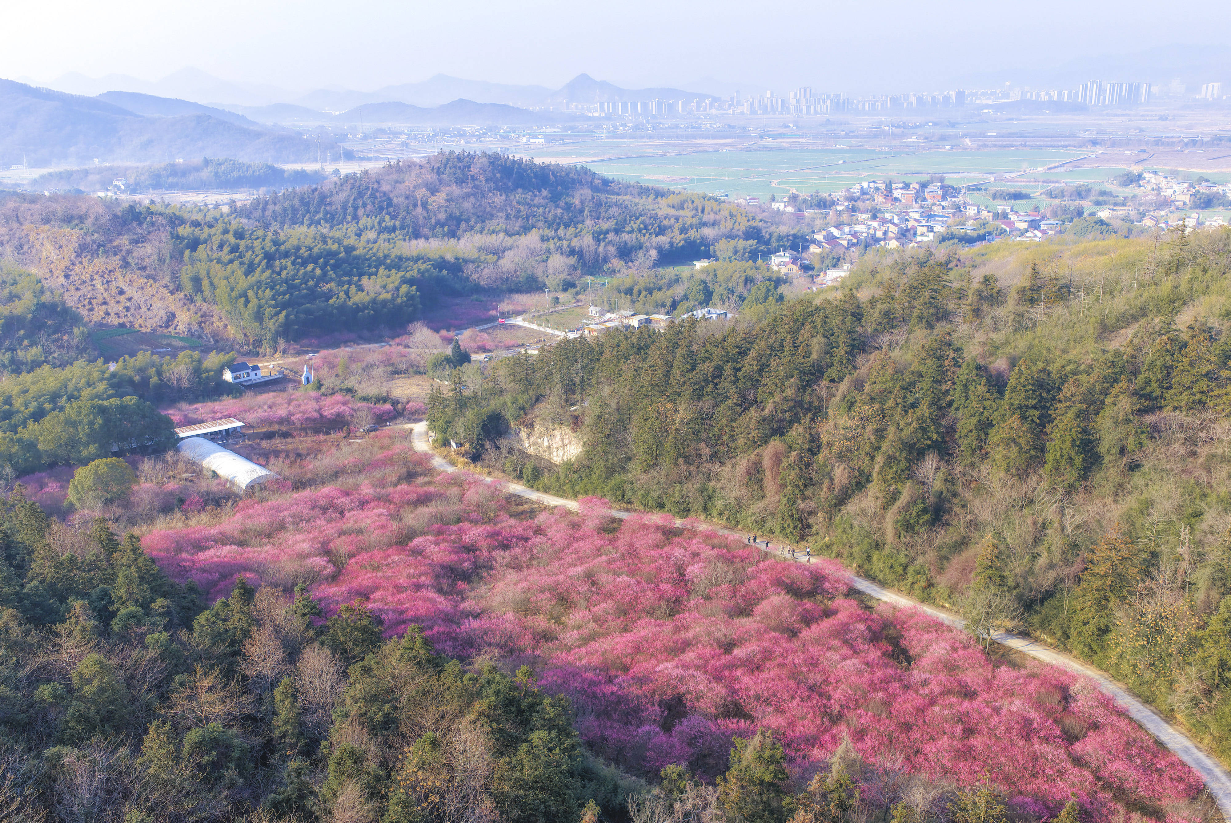 ↑2026年2月10日在浙江省湖州市长兴县和平镇城山沟景区拍摄的梅花。(无人机照片)CICPHOTO/陈海伟 摄