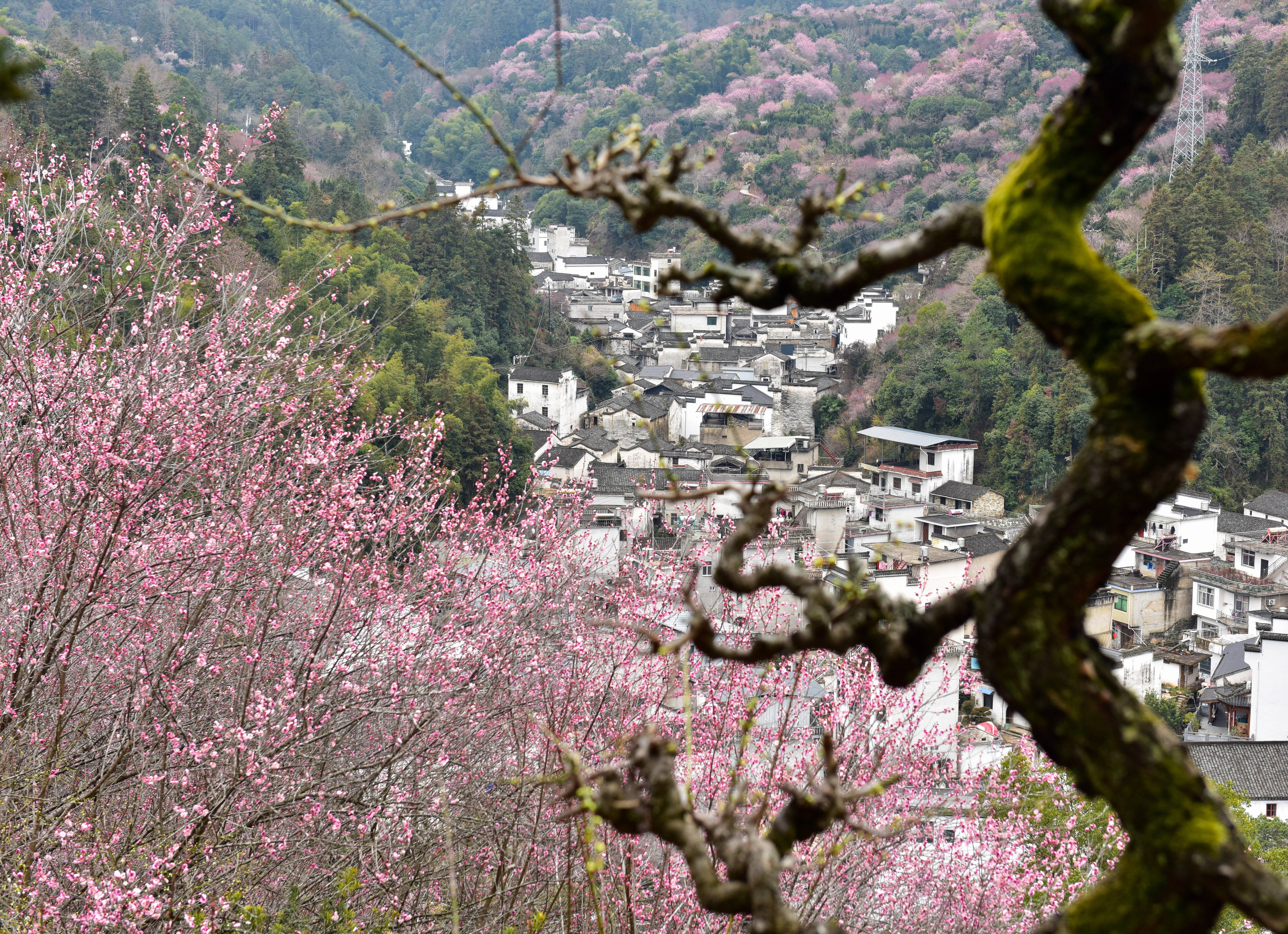 ↑2026年2月7日在安徽省黄山市歙县雄村镇卖花渔村拍摄的梅花。CICPHOTO/胡敦煌 摄