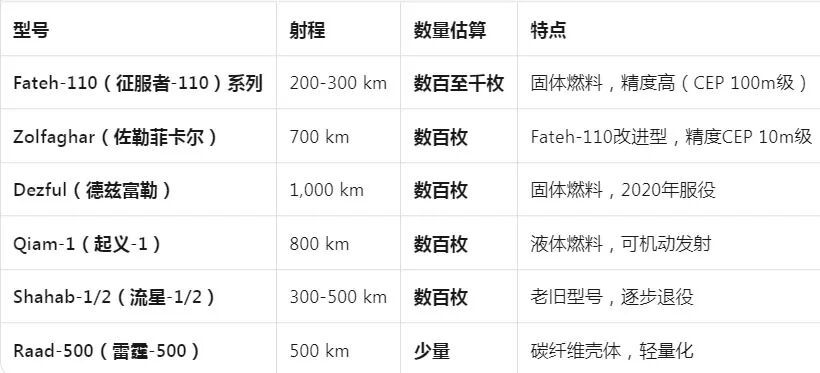 截至2026年初,伊朗中程导弹库存已从之前估计的2500枚锐减至1000枚出头,主要包括: