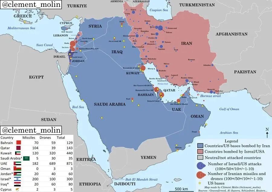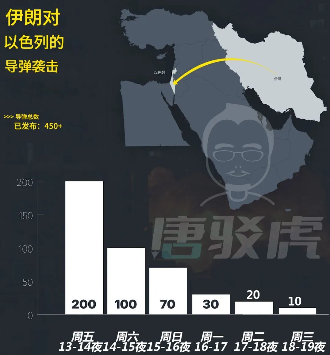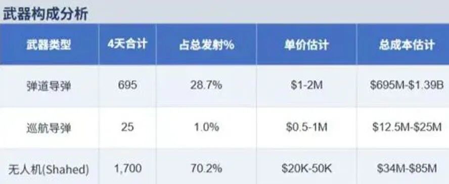 四天累计发射约700枚,其中针对以色列的中程导弹约170枚,针对海湾国家的短程导弹约500余枚。