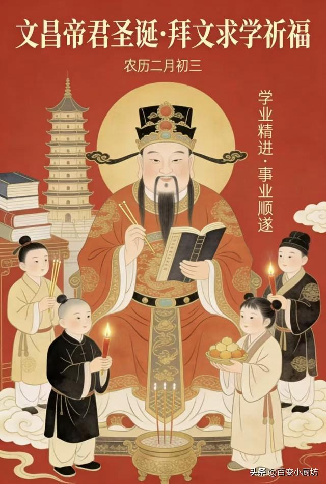 民间流传的文昌帝君故事,通篇都围绕勤学、立德、向善展开,没有任何超自然的迷信色彩。相传文昌帝君一生体恤寒门学子,深知读书求学的不易,他始终推崇“学业无捷径,唯有苦读勤”,认为真正的才学,既离不开寒窗苦读的坚持,更离不开品行端正的根基,唯有德才兼备,方能行稳致远。百姓感念他劝学向善、推崇学识的初心,便将农历二月初三定为他的诞辰,慢慢流传下诸多贴近生活的民俗,核心目的从来不是祈福庇佑,而是提醒世人,尤其是年少学子:读书要静心,做人要立德,努力才是收获的唯一捷径。