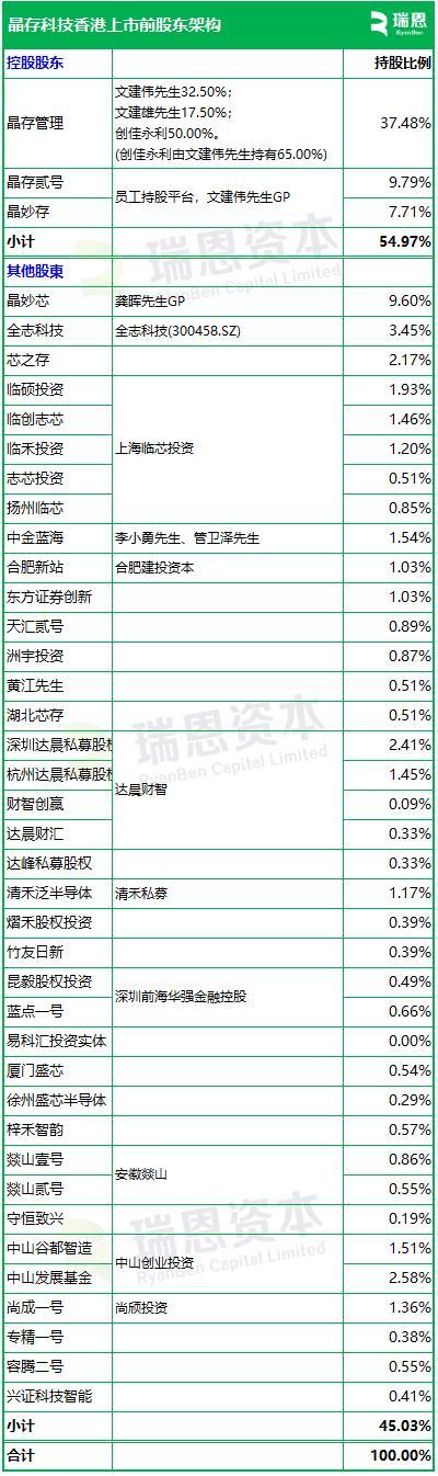 招股书显示,晶存科技在香港上市前的股东架构中,