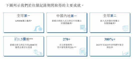 根据弗若斯特沙利文报告,以2024年出货量计,晶存科技在全球嵌入式存储市场所有独立厂商中排名第二,市场份额1.6%;晶存科技在全球LPDDR市场所有独立存储器厂商中排名第一,市场份额2.6%;晶存科技在全球搭载自研嵌入式主控芯片的存储器市场所有独立存储器厂商中排名第二。