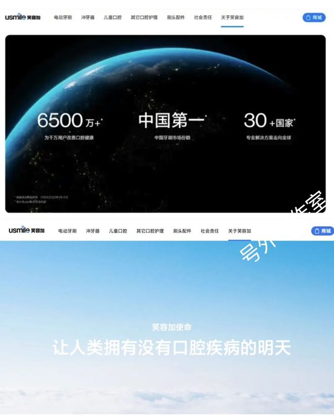 因违反《反不正当竞争法》涉嫌商业诋毁徕芬被罚25万元后,usmile官网自称的“中国第一口腔护理品牌”宣传海报被删除。