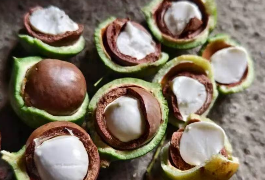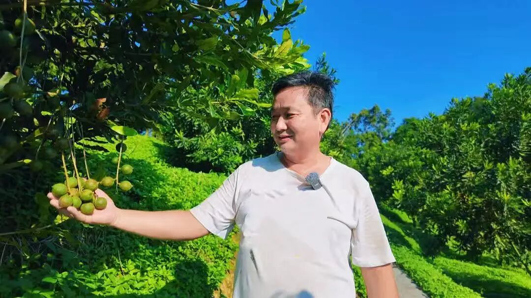 我这里种植的夏威夷果主要销往云南、广西。今年的果已被云南客户全部订走了,摘下来的鲜果每斤可销售4.3至4.5元,年收入近45万元。