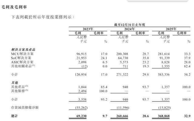 同期,其毛利率分别为17%、29.8%和34.2%,3年毛利增长翻倍。2023年至2024年毛利率大幅增长,主要原因是ASIC解决方案毛利率提升了16.7个百分点。